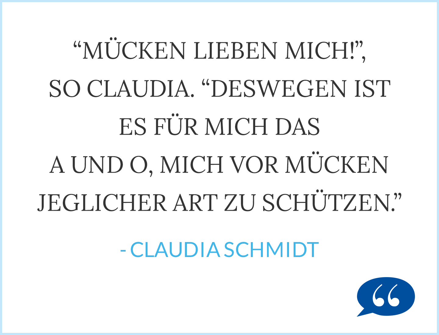 Auf ihren Reisen hat Claudia einige Tipps und Tricks zum Schutz vor Mückenstichen – und somit auch vor einer Übertragung von Malaria – gesammelt. Das können Sie, neben einer medikamentösen Prophylaxe, tun: